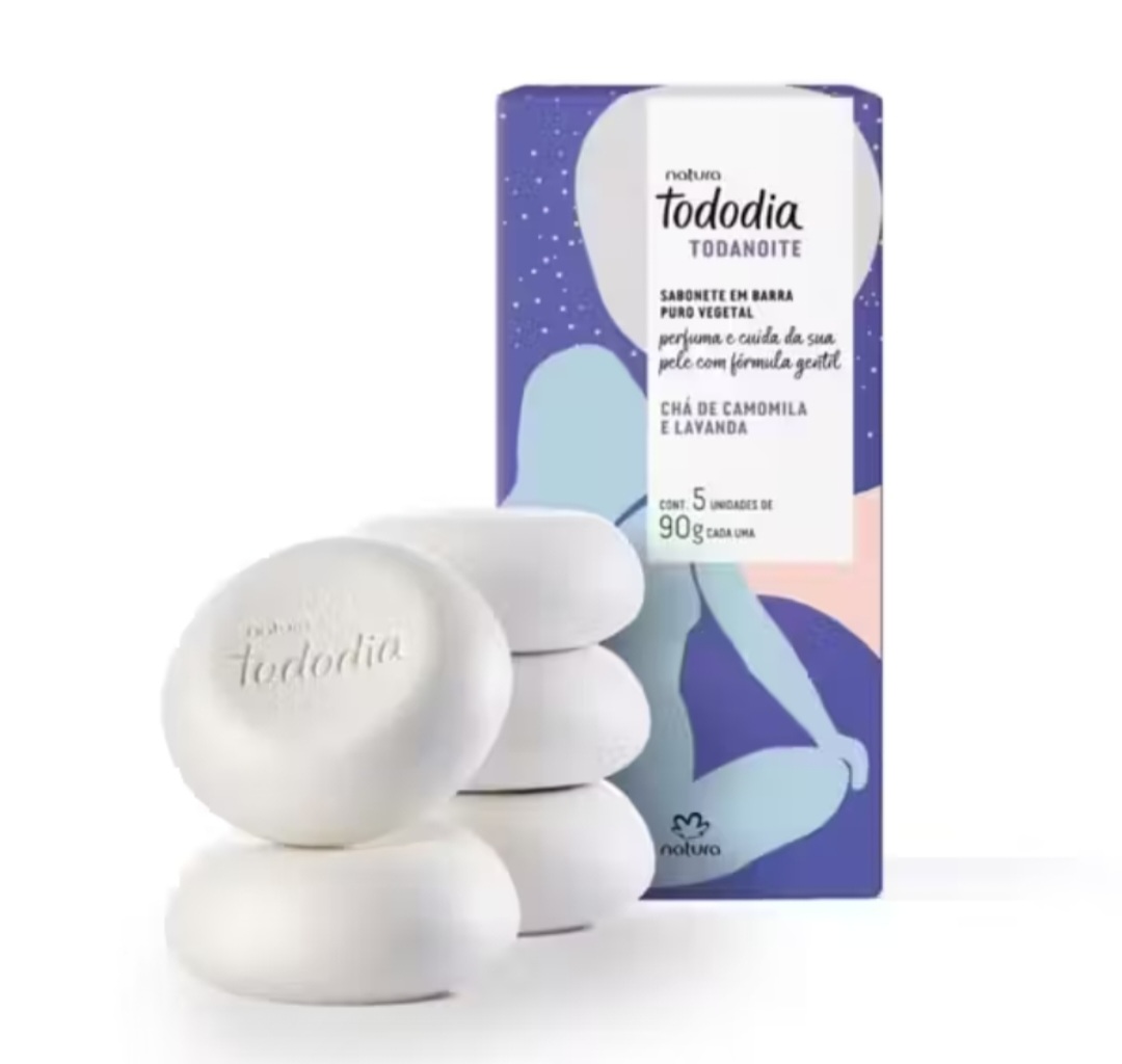 Inicie seu ritual de autocuidado noturno com um banho relaxante. O Sabonete em Barra Tododia Todanoite limpa delicadamente e envolve seu corpo com uma espuma cremosa e a fragrância relaxante* de chá de camomila e lavanda, promovendo uma experiência deliciosa. *Comprovado via pesquisa sensorial com consumidores.